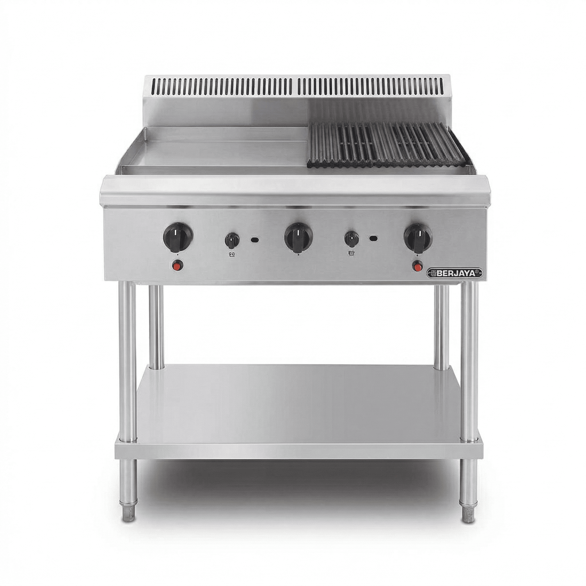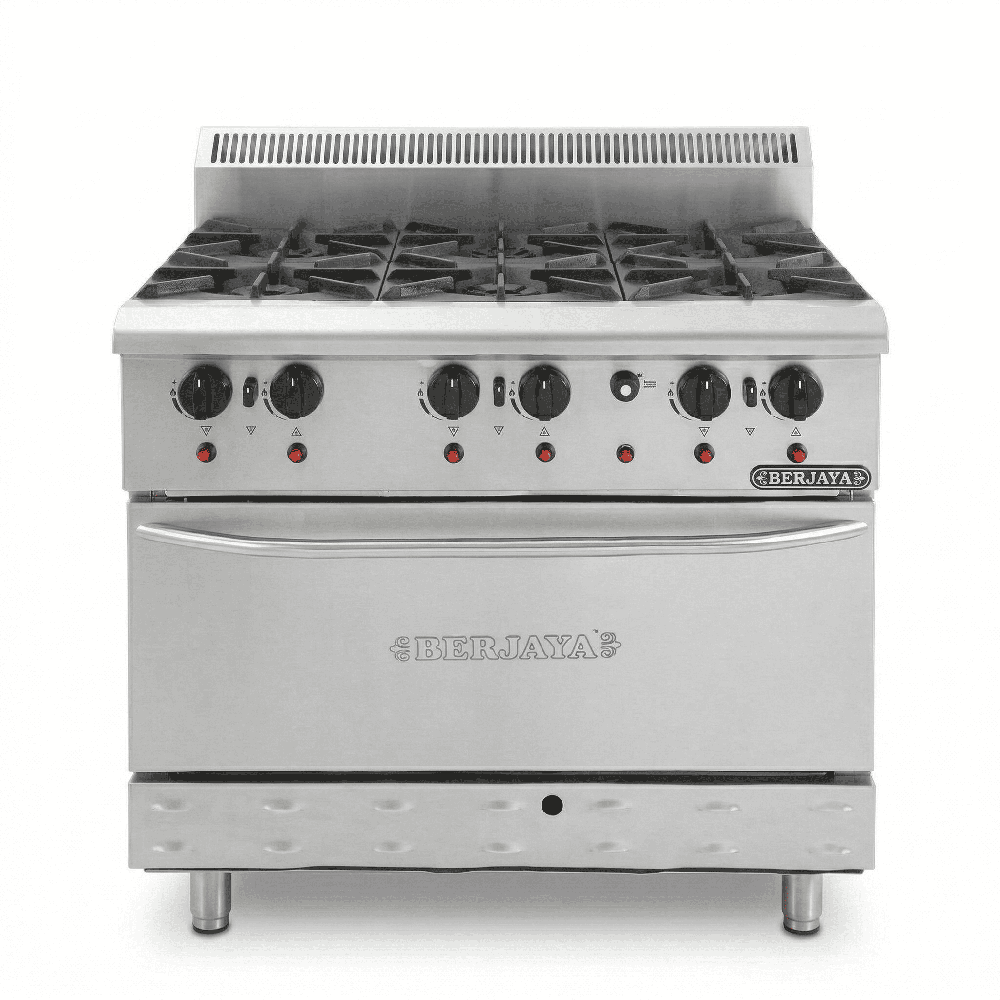 Bếp Âu công nghiệp Berjaya DRO6 17: Hệ thống 6 họng đốt mạnh mẽ tích hợp lò nướng dung tích lớn bên dưới.