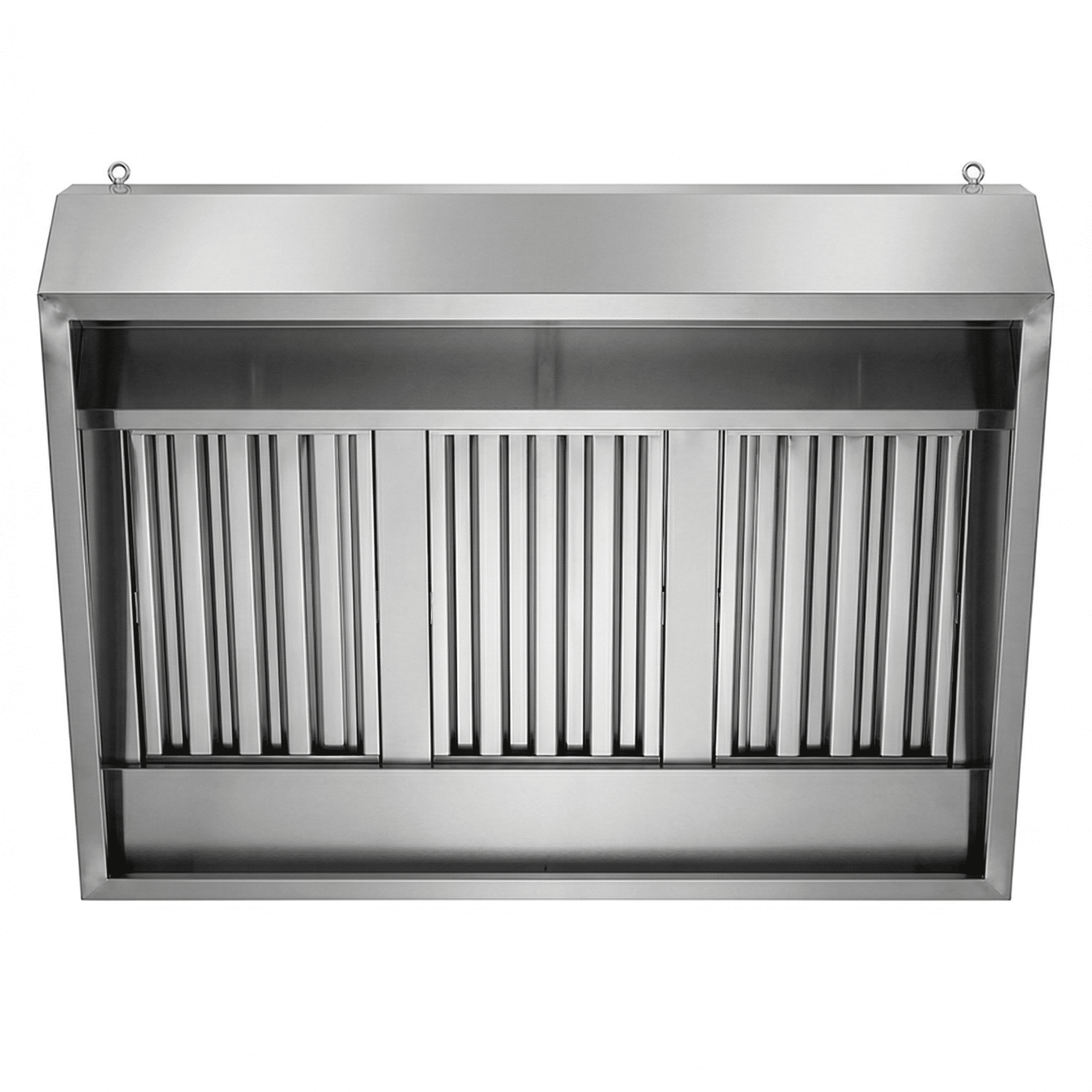 Đặc điểm: Kích thước bao trùm toàn bộ hệ thống bếp Âu trang bị phin lọc mỡ và hệ thống đèn chiếu sáng.