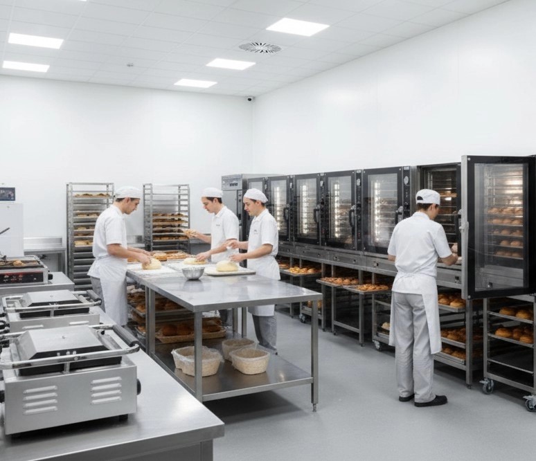 Đặc điểm: Tập trung các dòng lò nướng đối lưu lò tầng hoặc lò xoay công suất lớn với hệ thống thoát nhiệt chuyên biệt.