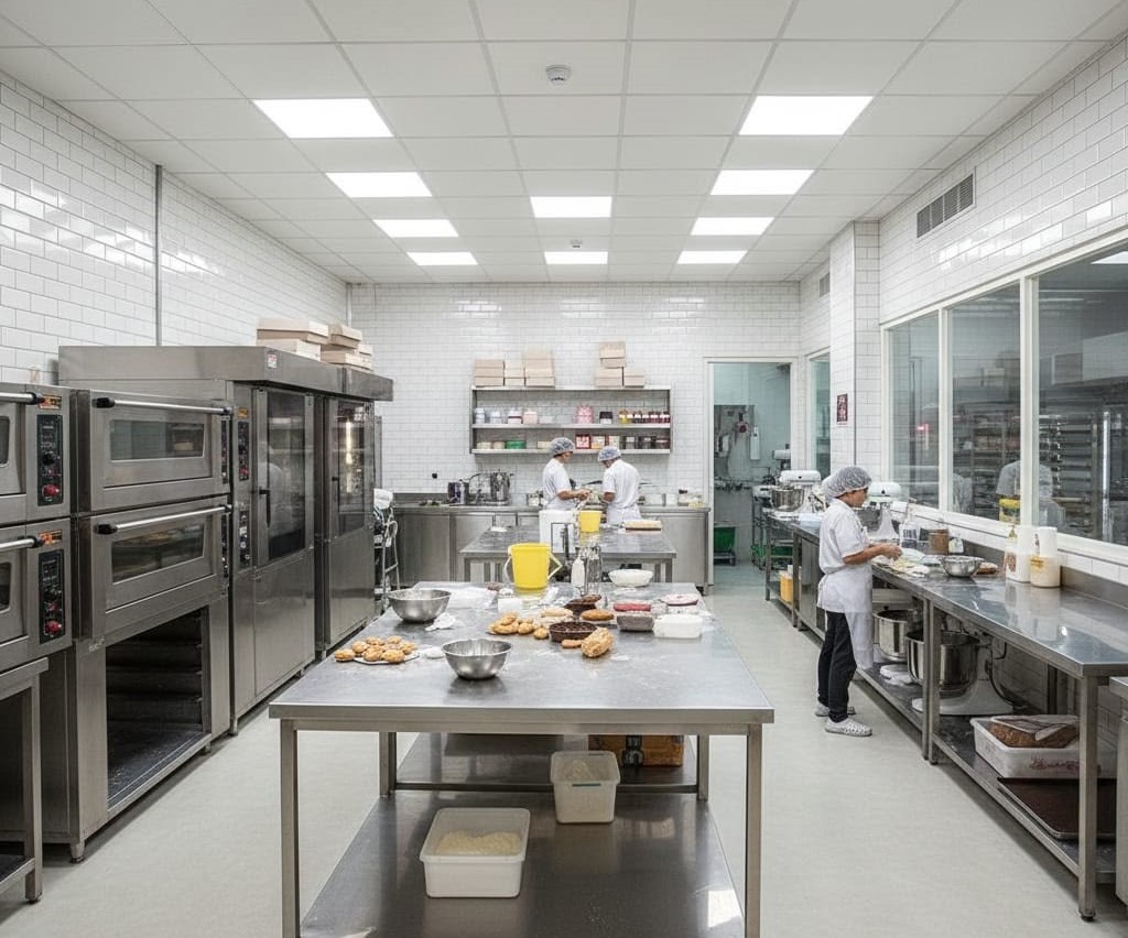 Hướng dẫn: Lắp đặt hệ thống đèn chiếu sáng tiêu chuẩn để hỗ trợ các thao tác trang trí bánh đòi hỏi độ chính xác cao.